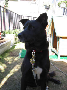 ←↑ Noriさんの家に来たころです。お庭に出て、回りの様 子を見ています。結構、ワンコが通りますよ。好きなワンコもいるしそうでないのもいます。私が昼寝をしているとみんながなでて行ってくれます。