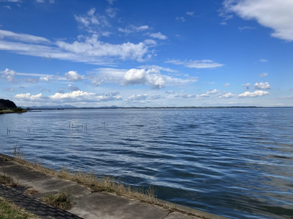 ラーメン一遊で食事。人気のあるラーメン店のようで、少し混んでいたがおいしかったです。復路は向かい風がきつく、湖面も波立っています。写真を撮る余裕もほとんどなかったです。