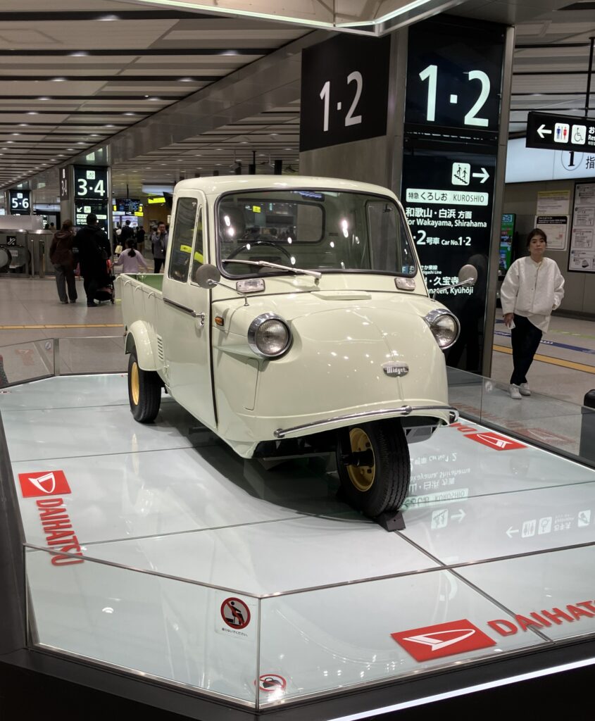 新大阪駅で新幹線を降りて、最初に目についたのがダイハツミゼット。懐かしいですが、池田のカップヌードルミュージアムの前にもありました。