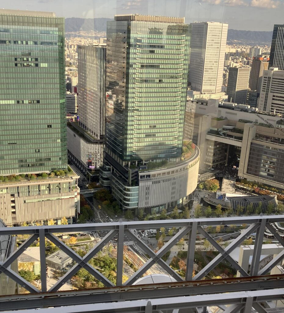 とりあえず、うめきた公園を抜けて梅田スカイビルへ。地下の昭和風のレストラン街で食事して、空中庭園展望台へ行きました。川向こうの昔住んでいたところや母校を眺めましたが、マンションらしき建物が増えておりました。