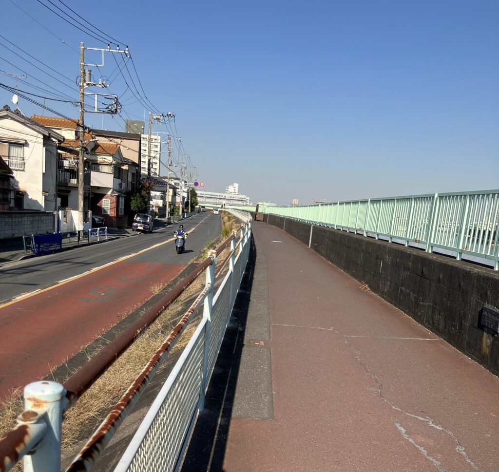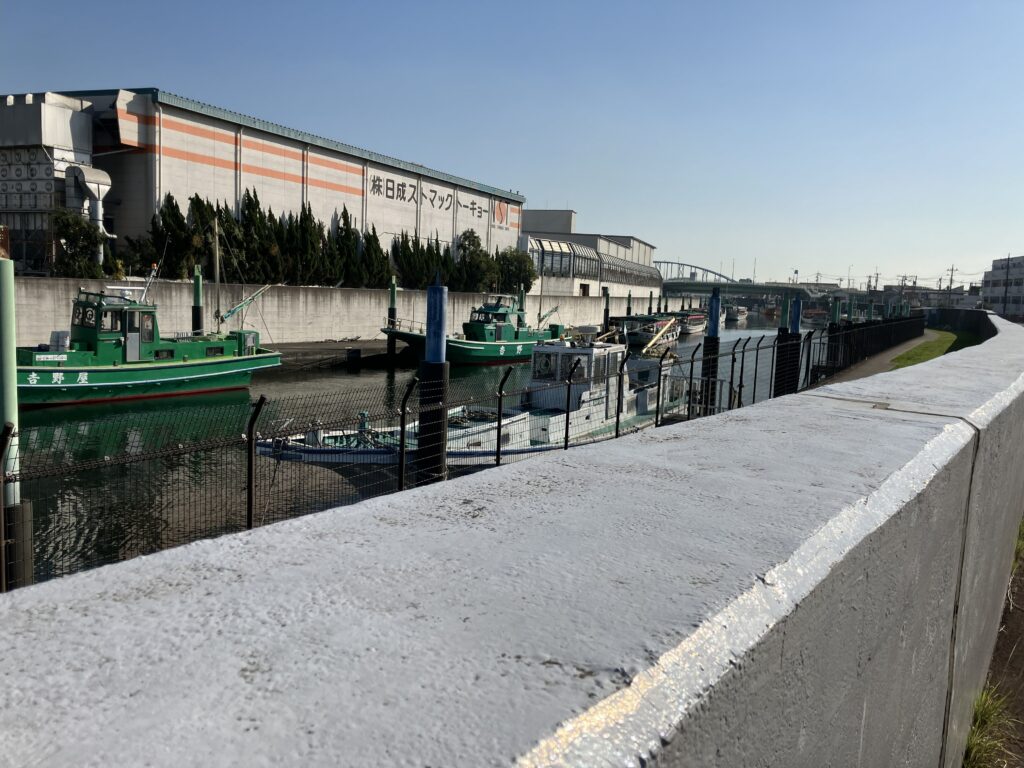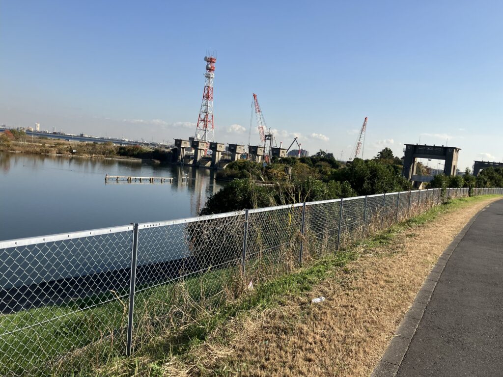 しばらくすると、川幅も狭くなり、川の両岸には釣り船や屋形船が係留されています。川幅に合わせてか、サイクリングルードも狭くなったり、途中工事をしているところもあり、一般道へ迂回したり、知らないうちに川沿いが旧江戸川から新中川に変わっていたりで、対岸を後戻りしたりと、地図を確認しながら走ることになりました。