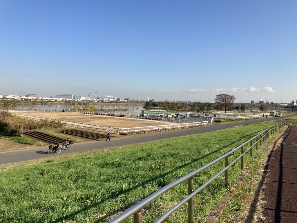 江戸川閘門の横を通って、篠崎ポニーランドに出たところが、旧江戸川の分岐点です。残念ながら、ポニーランドにポニーはいませんでした。